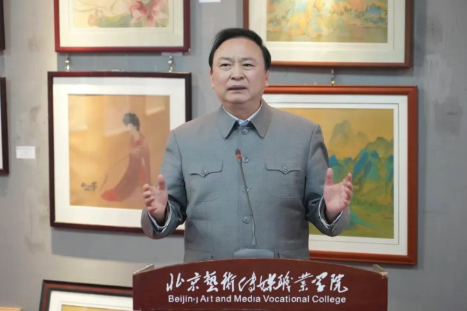 2026年1月15日,北京艺术传媒职业学院第十三次美术、设计学科学生期末作品汇报展览在北艺传媒美术馆隆重开幕。杨波校长出席开幕式并发表讲话,郭孟祥先生、徐健先生、郭永琰先生、刘建丰先生、王立志先生、张建豹先生等艺术界专家应邀莅临指导,学校师生代表共同参加了活动。